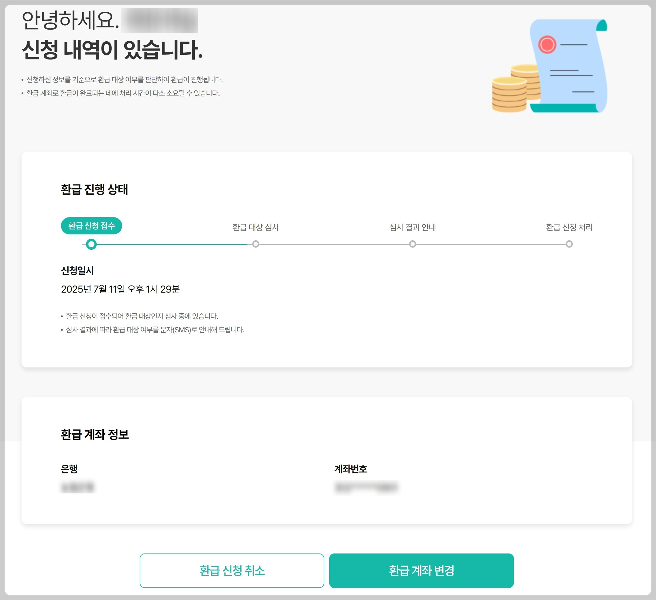 5. 환급신청 완료 및 취소 및 계좌변경 안내